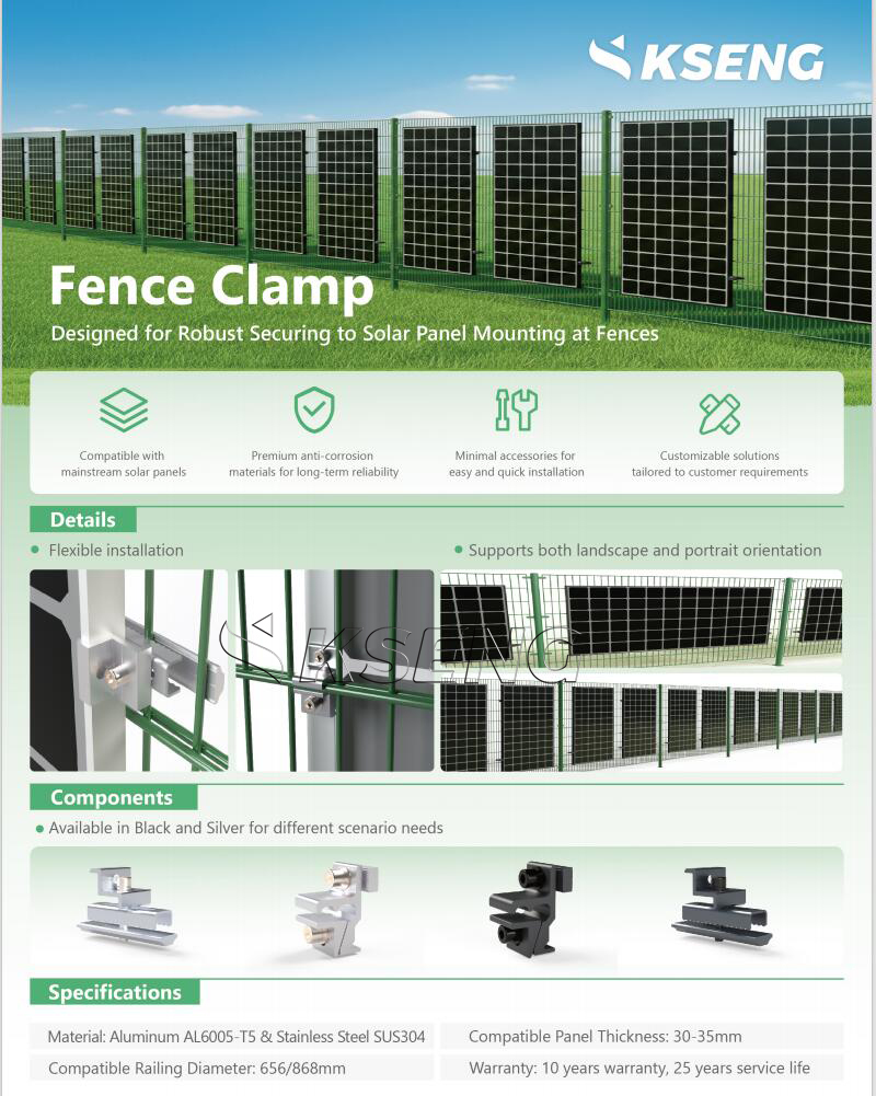 I morsetti per recinzioni fotovoltaiche sono componenti essenziali negli impianti solari, progettati per fissare saldamente i pannelli solari alle strutture delle recinzioni. Questi morsetti svolgono un ruolo cruciale nel garantire la stabilità, la sicurezza e la longevità degli impianti solari sulle recinzioni.